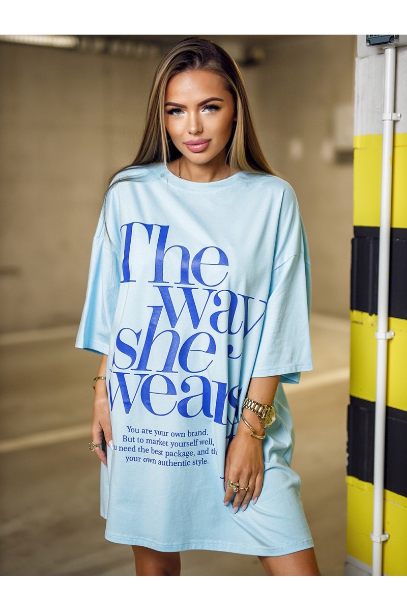 Moteriška palaidinė THE WAY – tunika trumpomis rankovėmis. Dekoratyvūs, spalvingi užrašai priekyje. Palaidinės nugara lygi.