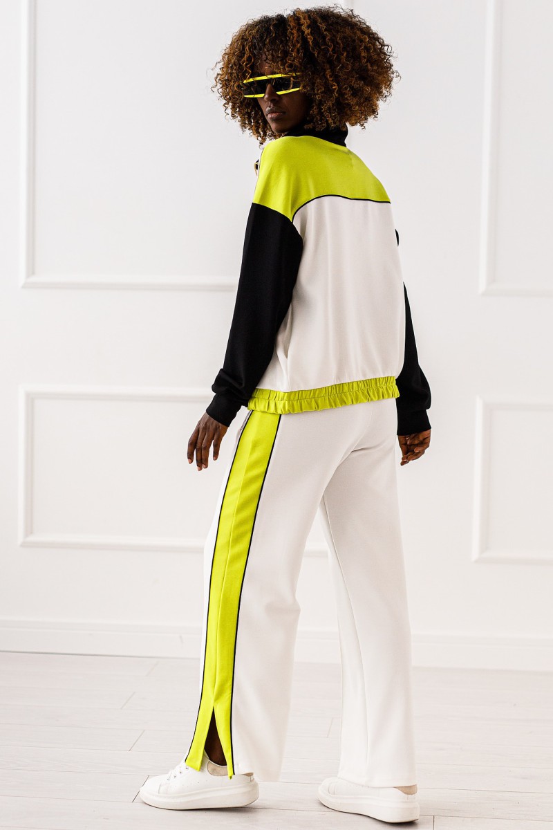 Бело-салатовый комплект спортивной одежды идеально подходит для женщин, которые ценят комфорт и неподвластный времени стиль. Уже при первом прикосновении он радует мягкостью материала.