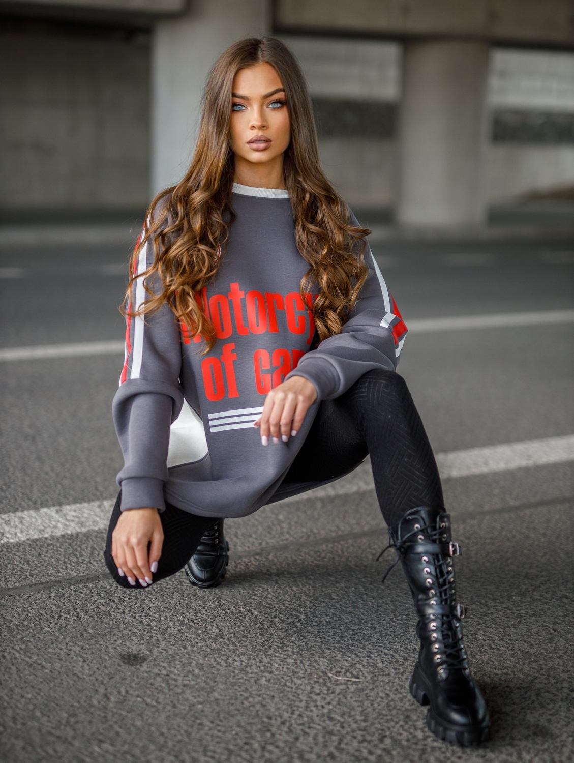 Женская толстовка MOTORS - оригинальный дизайн женской толстовки - крой oversize, без капюшона, одевается через голову. Большая аппликация спереди.